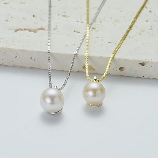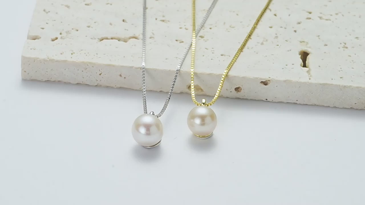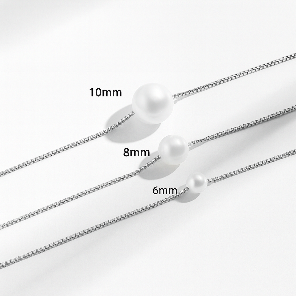 Each necklace features a handpicked, strong-luster natural freshwater pearl (8–10mm).
